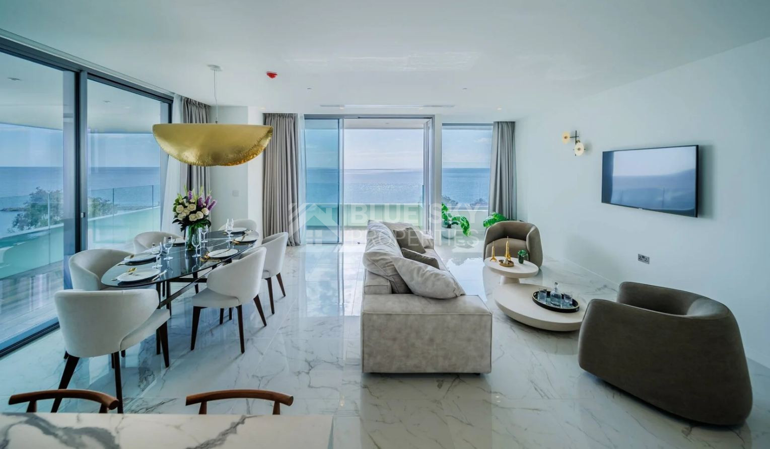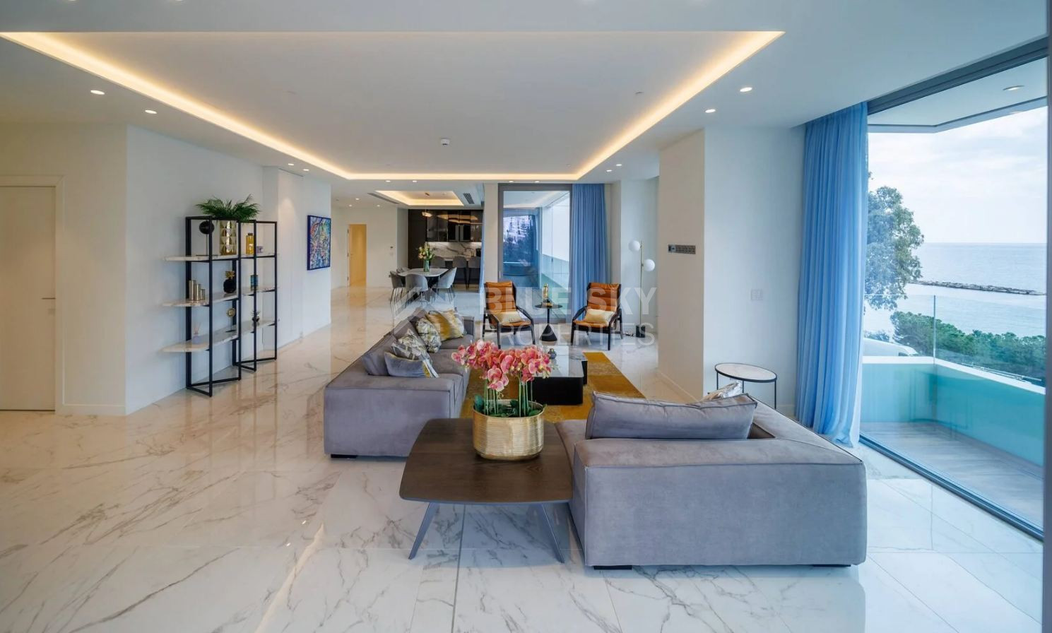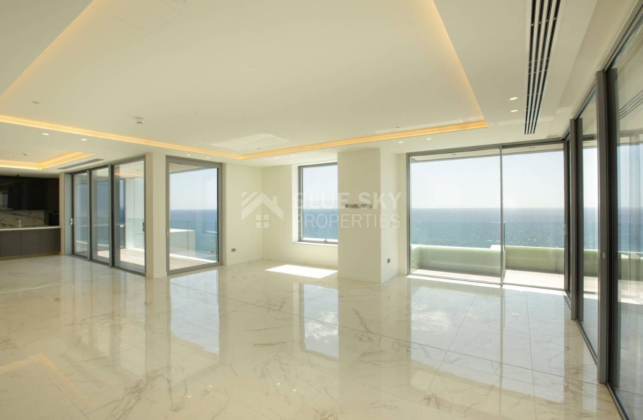 Currently available are two exceptional full-floor apartments, located on the 1st and 10th floors, both offering identical layouts and outstanding privacy. Each unit features four spacious bedrooms and occupies an entire floor, providing the feeling of a private residence within a secure luxury building. The apartments offer approximately 254 sq.m. of internal living space, complemented by an impressive 96 sq.m. of covered verandas, ideal for entertaining or enjoying unobstructed sea views in absolute comfort.
