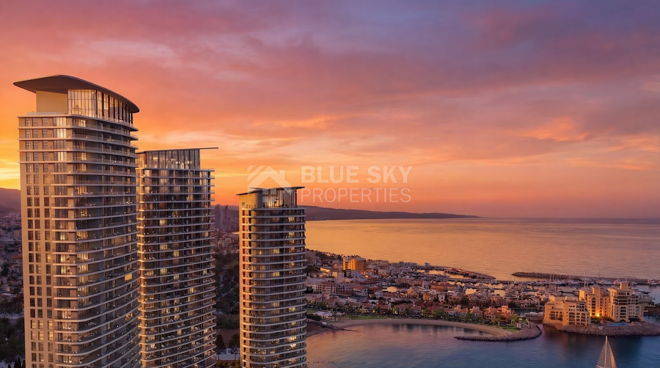 Discover a premium 1 bedroom freehold seafront apartment for sale in central Limassol near the Marina. Sea views, concierge, spa, pools, smart home features, Miele kitchen, and strong appeal for local and international buyers.
