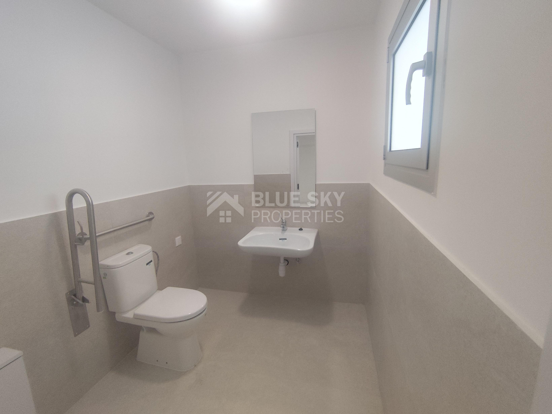 It has open plan kitchen (with kitchen island), one living area , two bedrooms , family bathroom , one guest w.c. one covered parking space, one disable parking space and a storage room.