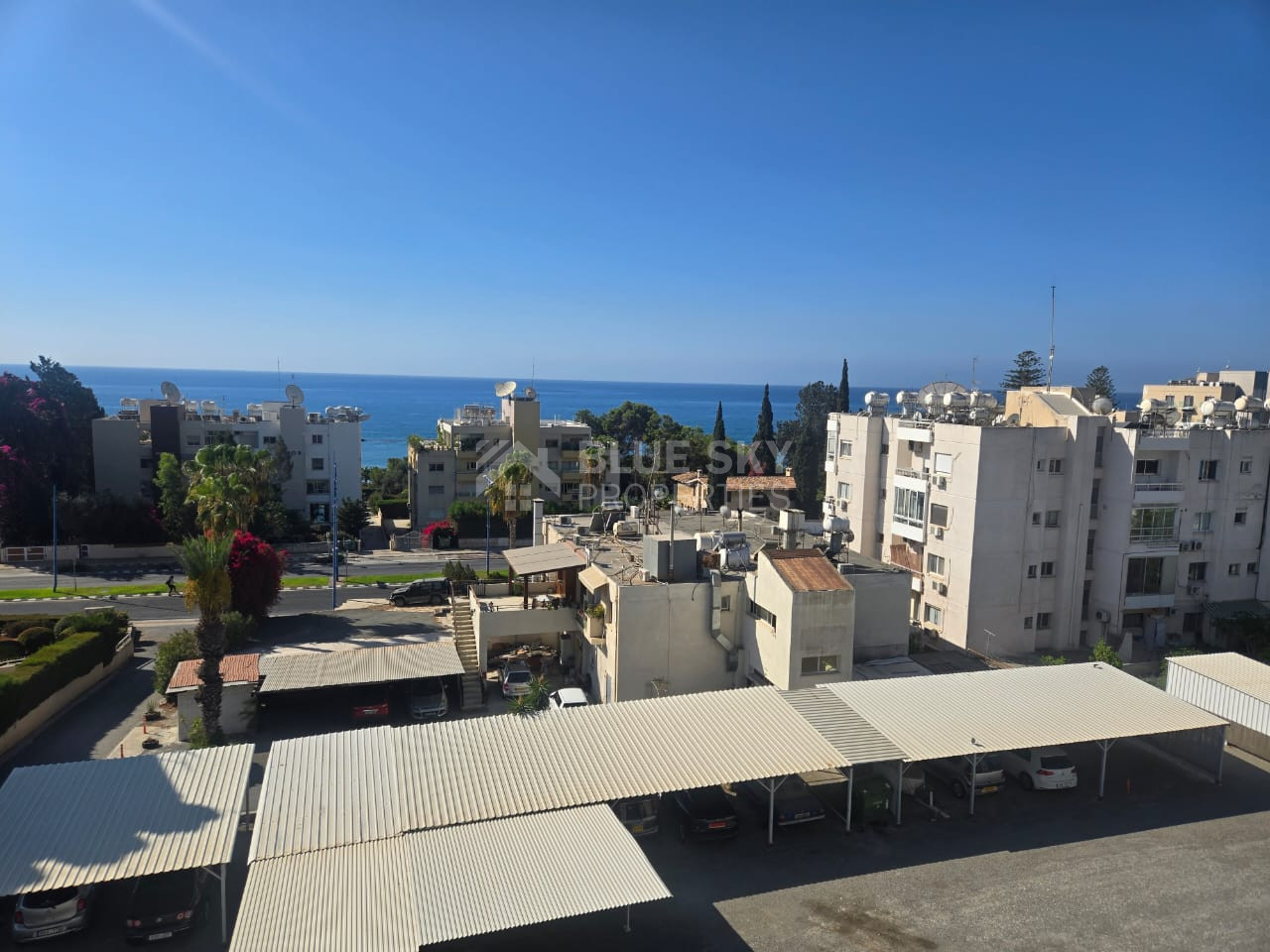 Rent: Renovated, fully furnished two bedroom ground floor apartment in the Amathusia area of Limassol, offering panoramic sea views.