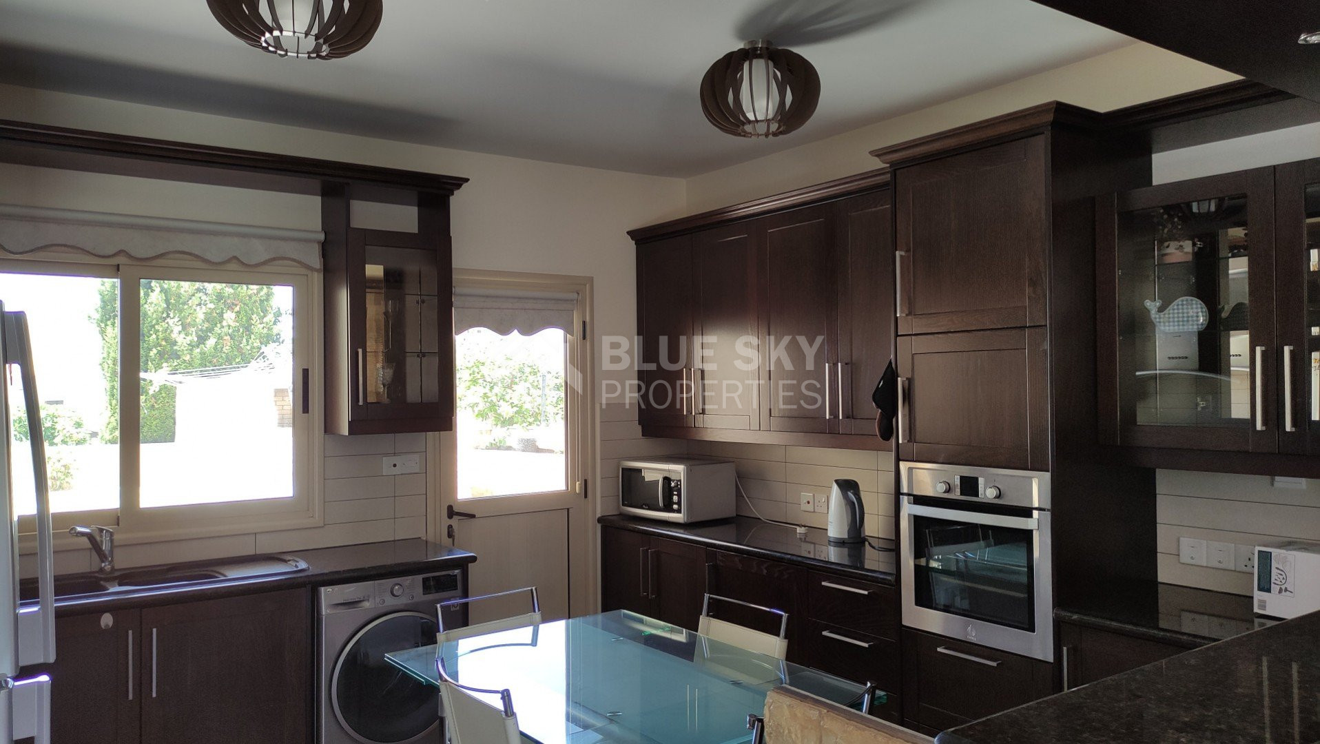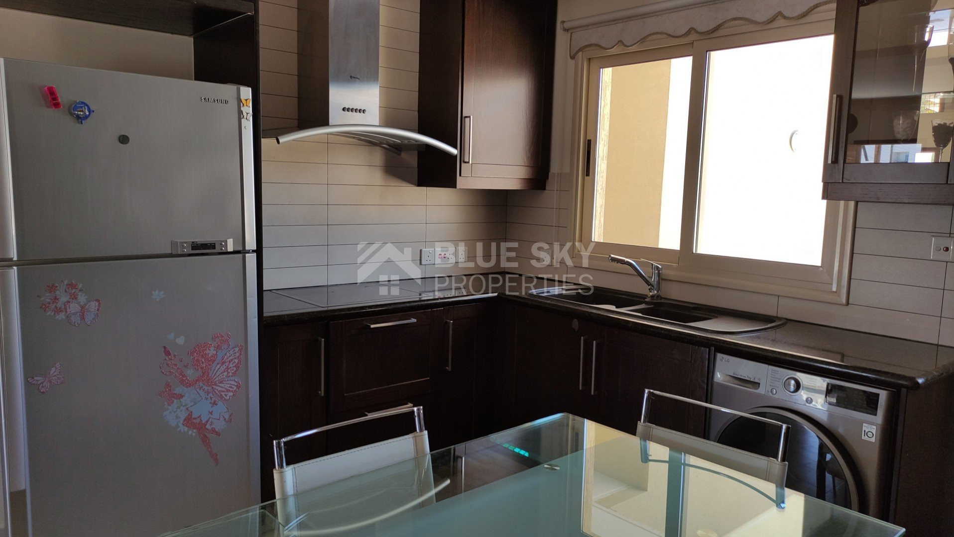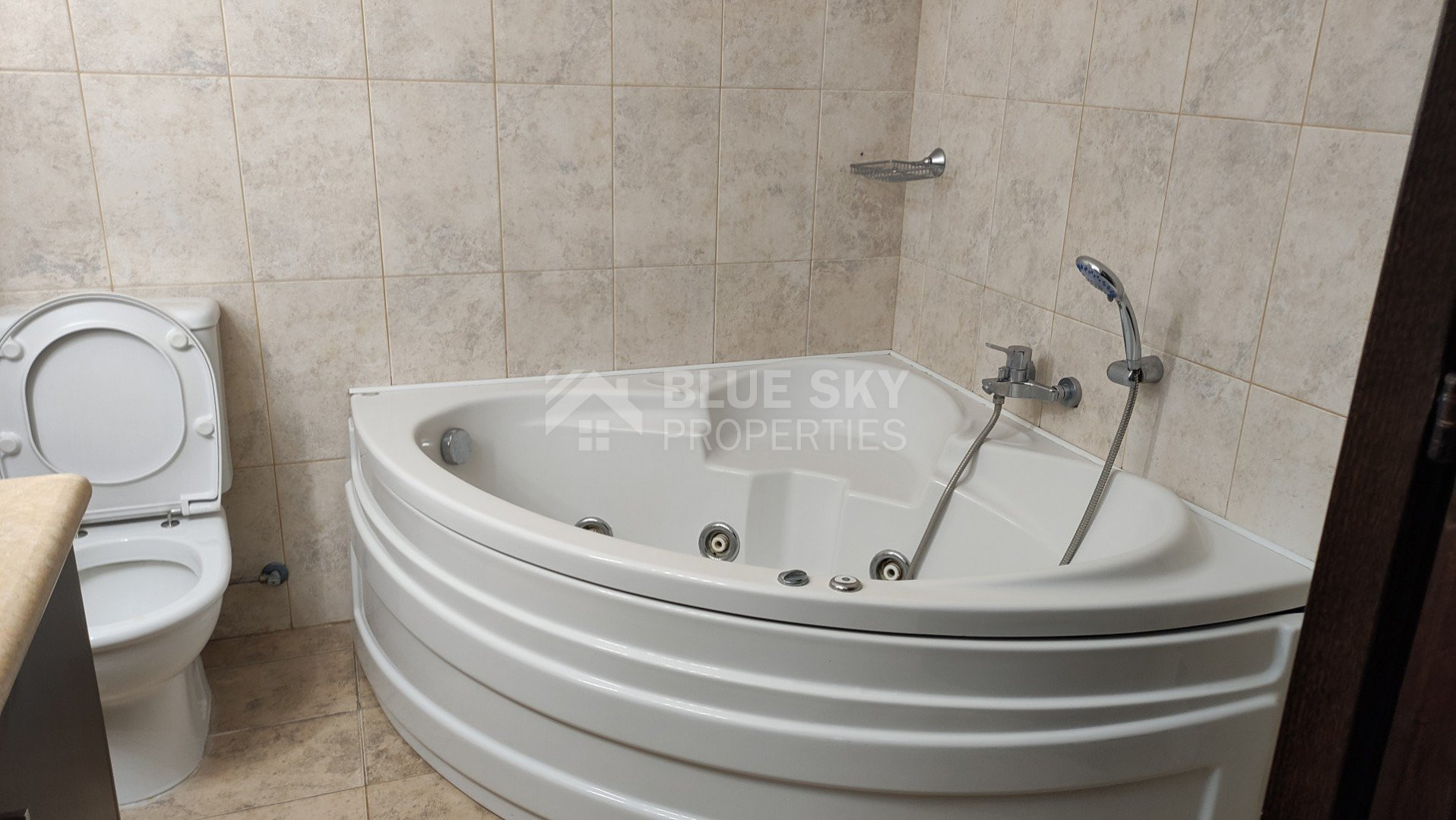 Spacious fully furnished 3 bedroom ground floor apartment for rent in Yeroskipou.Three bedroom and two bathroom.The internal size of this apartment is 170 square meters and the total size of verandas are approximately 70 square meters.There are a lot of features and facilities at the building such us: air-condition, well maintenance and clean building