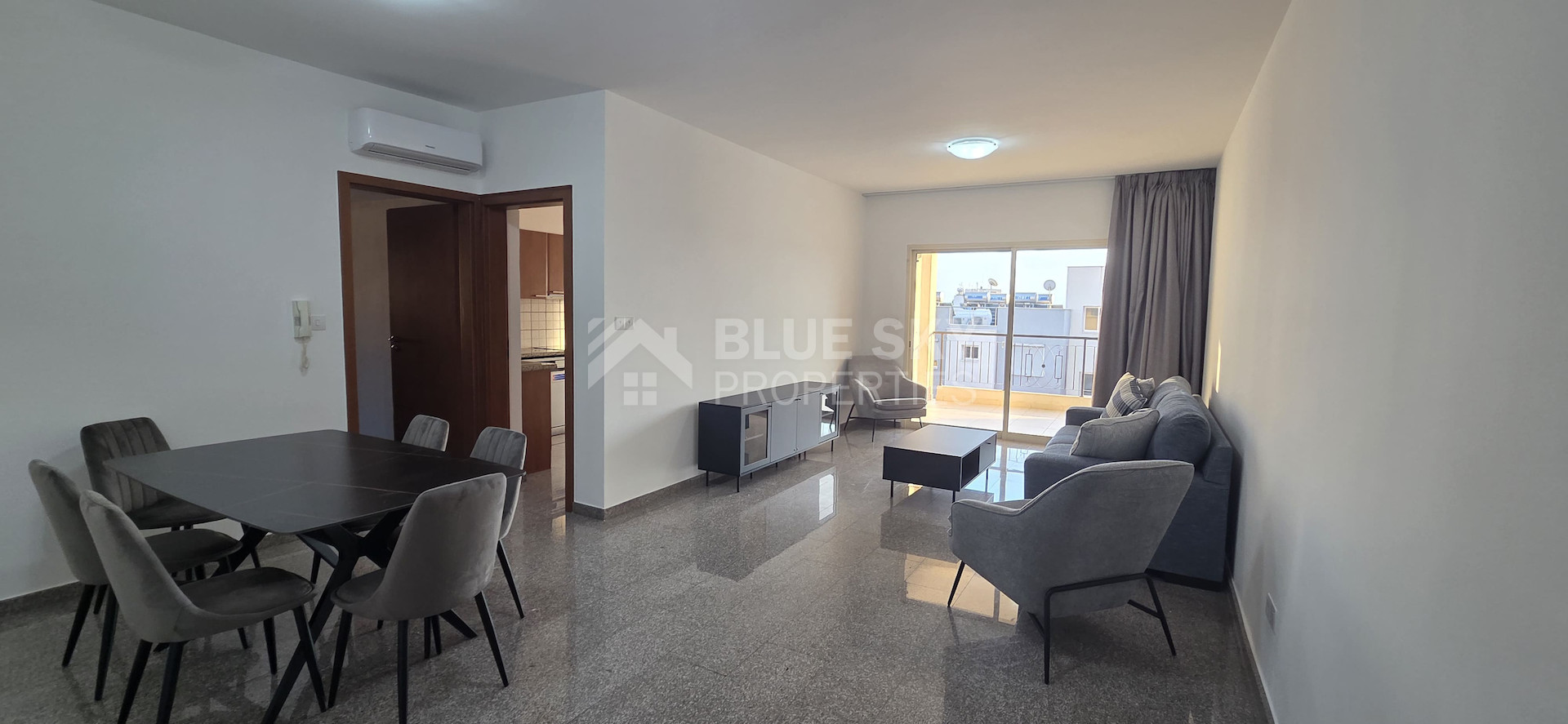 A recently renovated three-bedroom apartment located in a quiet residential area of Mesa Geitonia, offering easy access to Spyrou Kyrianou Avenue, the highway, and all main road arteries.