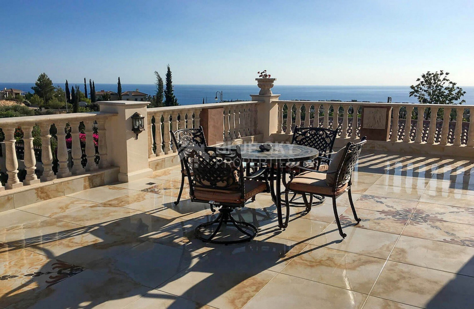 Large terraces, extensive outdoor lounge and dining spaces, a fully fitted outdoor kitchen and bar with surround sound, and a 12m x 5m mosaic-tiled overflow swimming pool all contribute to a refined indoor–outdoor lifestyle in one of the most sought-after locations of Aphrodite Hills.