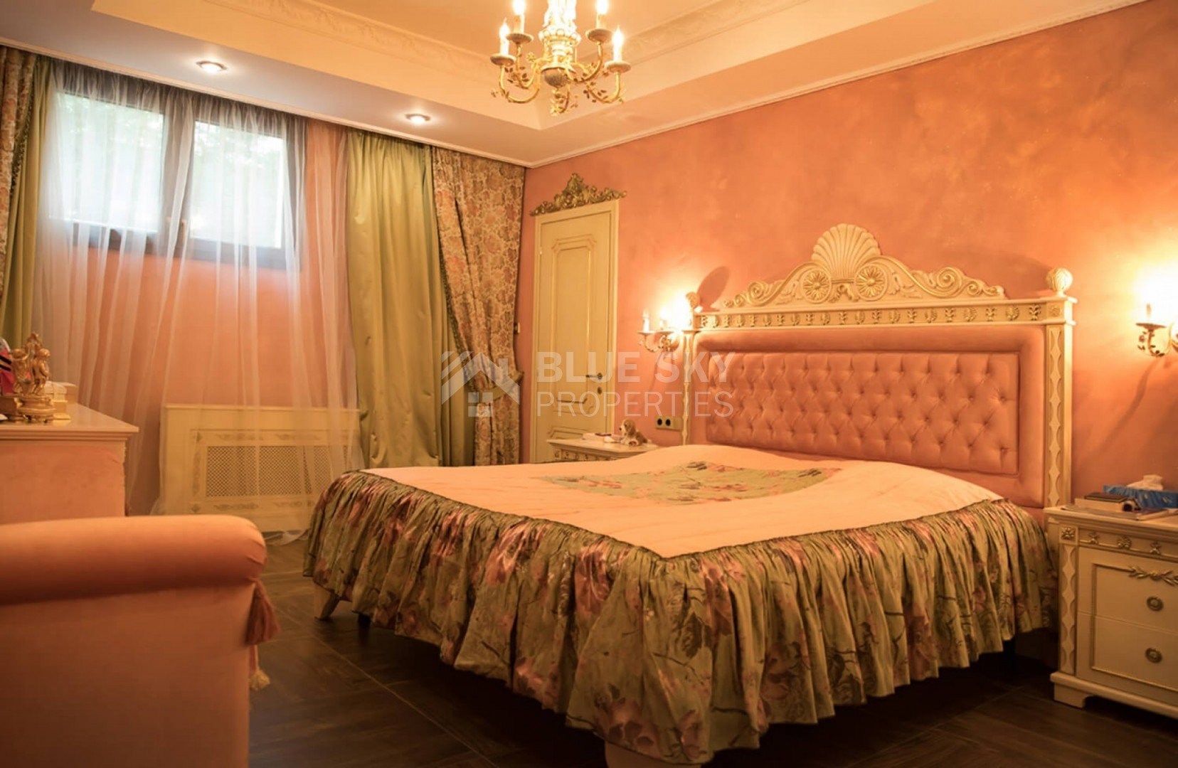 The home is furnished and decorated exclusively by high-end Italian brands and includes 6 spacious bedrooms, 6 modern bathrooms, 2 guest WCs, 2 elegant living and dining areas, 2 Italian-designed kitchens, and a generous office space. A covered garage accommodates up to 4 cars, with ample outdoor parking available.