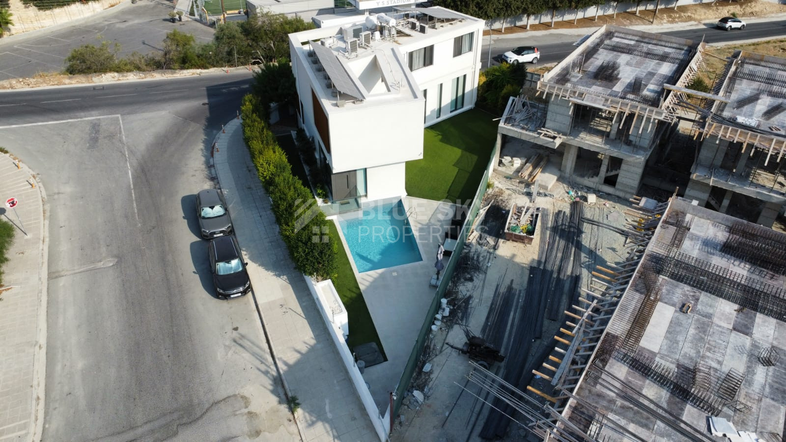 Situated on a 499 sq.m. corner plot, this villa combines modern design with comfort and practicality. The impressive architecture features high ceilings, a spacious living room with floor-to-ceiling windows, and abundant natural light throughout. The ground floor offers an open-plan layout with a large kitchen, dining area, guest toilet, and a secondary living room ideal as a playroom or home office.