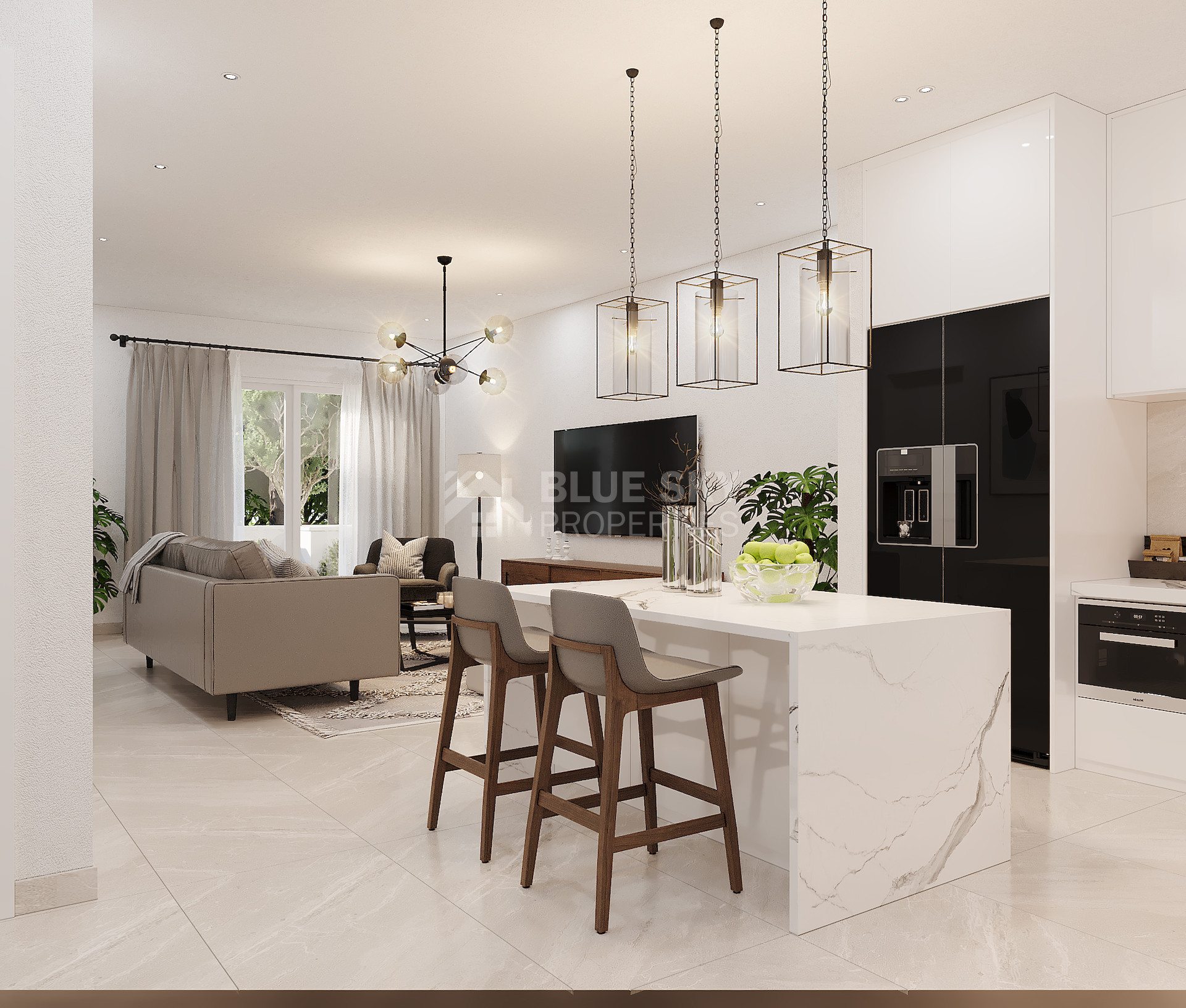 Living Areas: Bright open-plan kitchen, living, and dining space