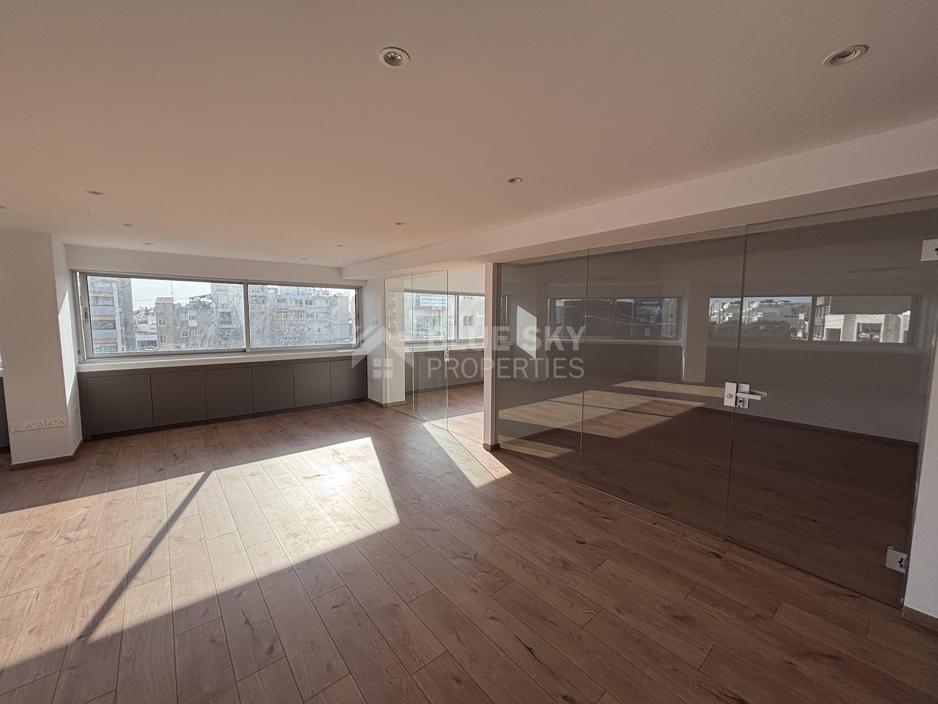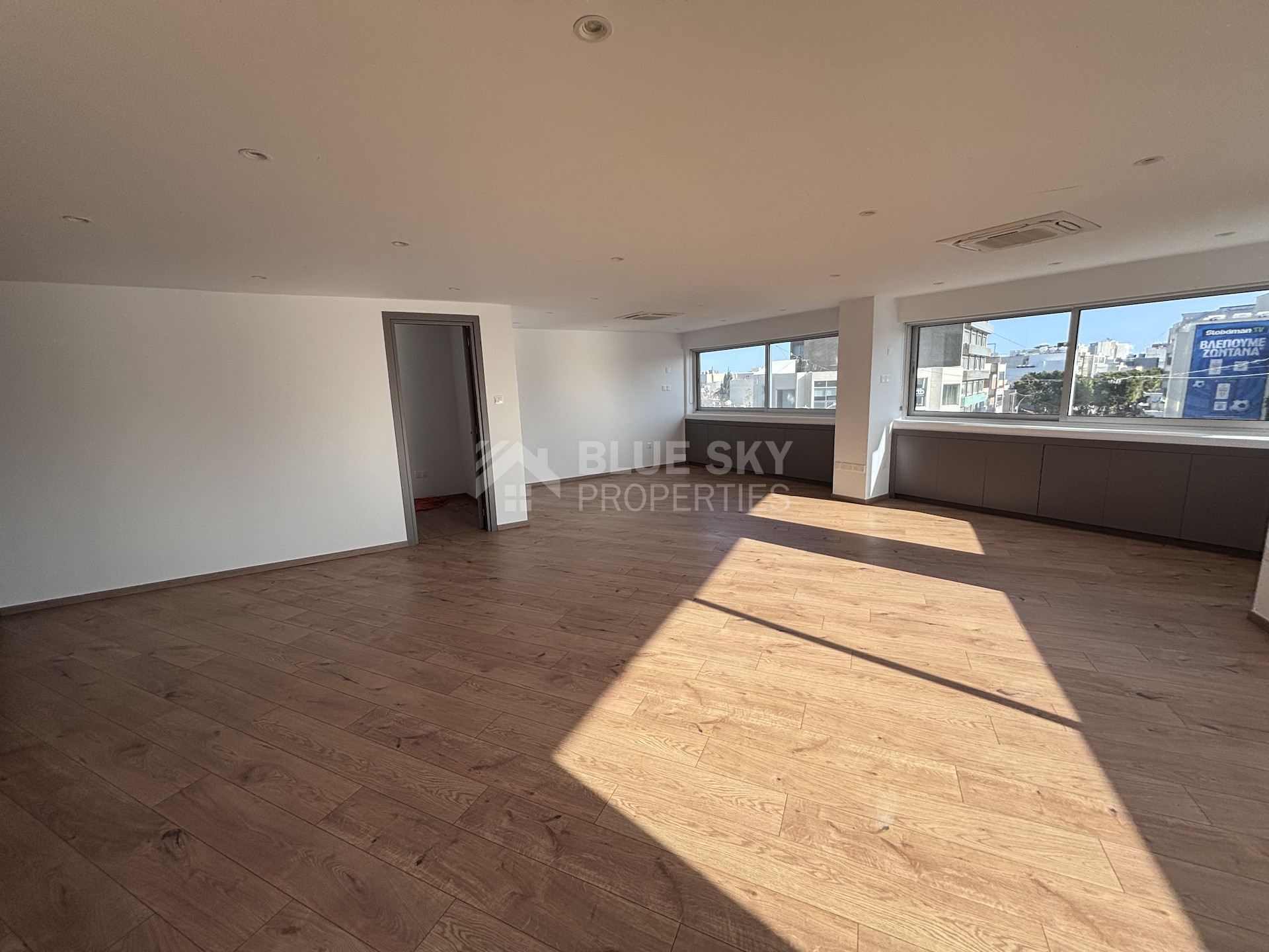 Available for rent, this well-maintained office offers 138 sqm of internal space on the third floor of a modern seven-story building with elevator access. The layout is practical and spacious, allowing flexibility for a range of business needs. Large windows ensure plenty of natural light throughout the workspace.
